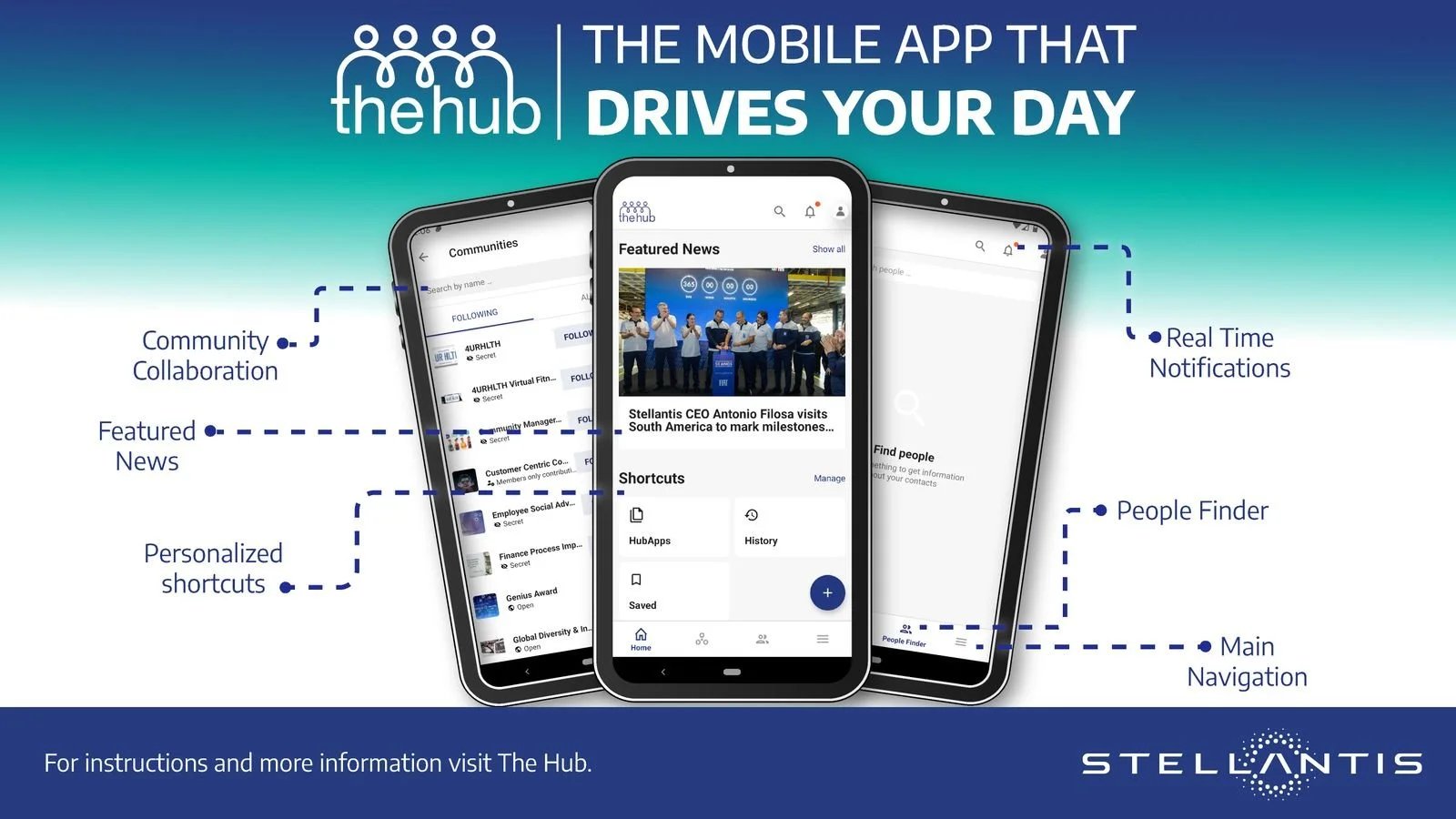 Stay connected with everything happening at Stellantis—right from your phone. The Hub app gives you real-time updates, company news, community tools, and quick access to the resources you use every day.
